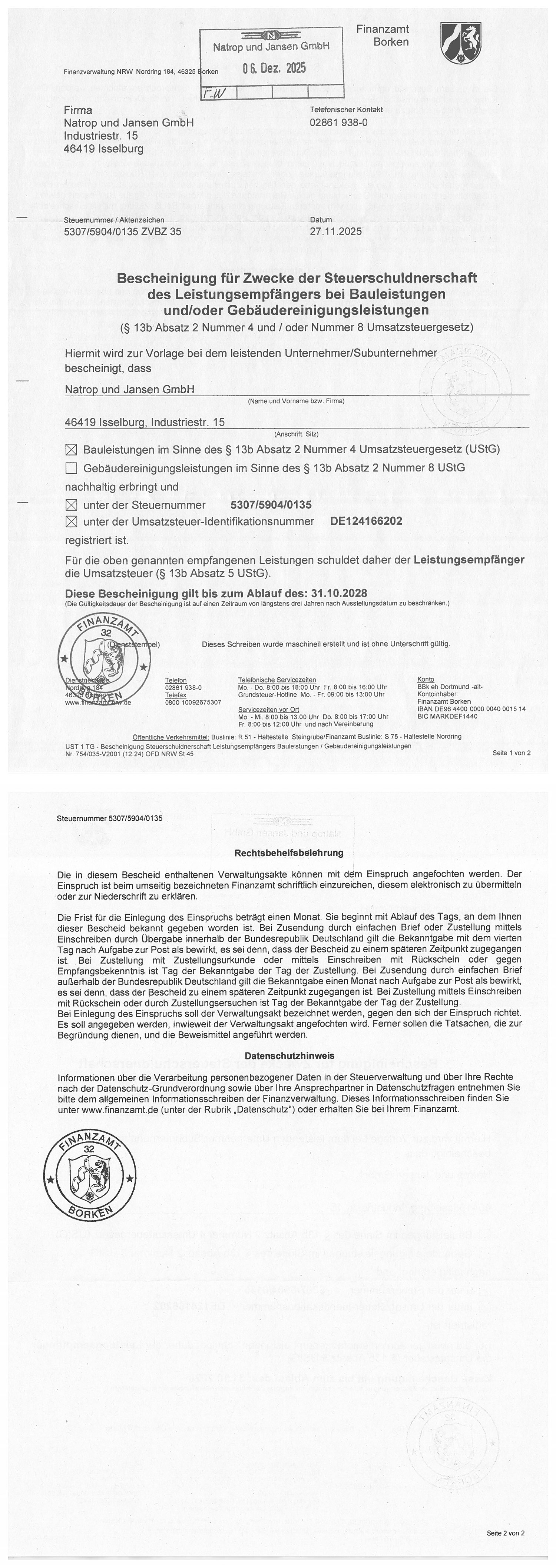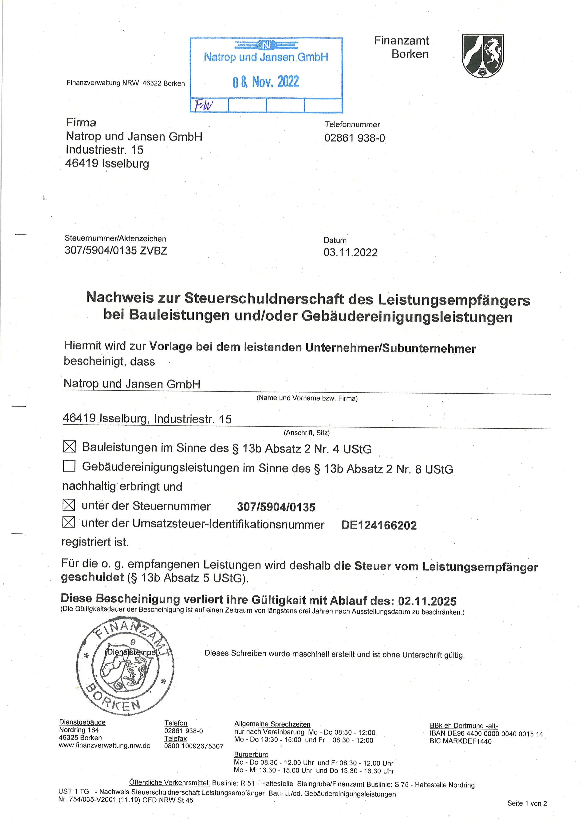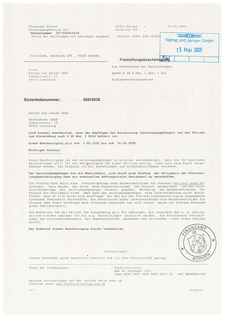 Freistellungsbescheinigung (Finanzamt Borken)